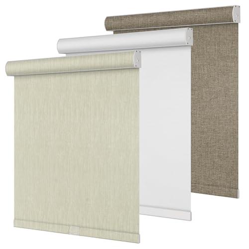 - UPGRADE LINEN FABRICBlackout roller shades crafted with natural linen fabrics,The main component of linen fabric is natural linen fiber, which is very friendly to children or sensitive people. Unique linen fabric can better decoration of housesSuitable for living room/room/kitchenSERVICEOur Blackout Cordless indoor shades custom size for all your needs. 24hour customer service response, enjoy return and exchange policy. We Offers 12 Months Warranty on All of Our Window Shades and Blinds.
