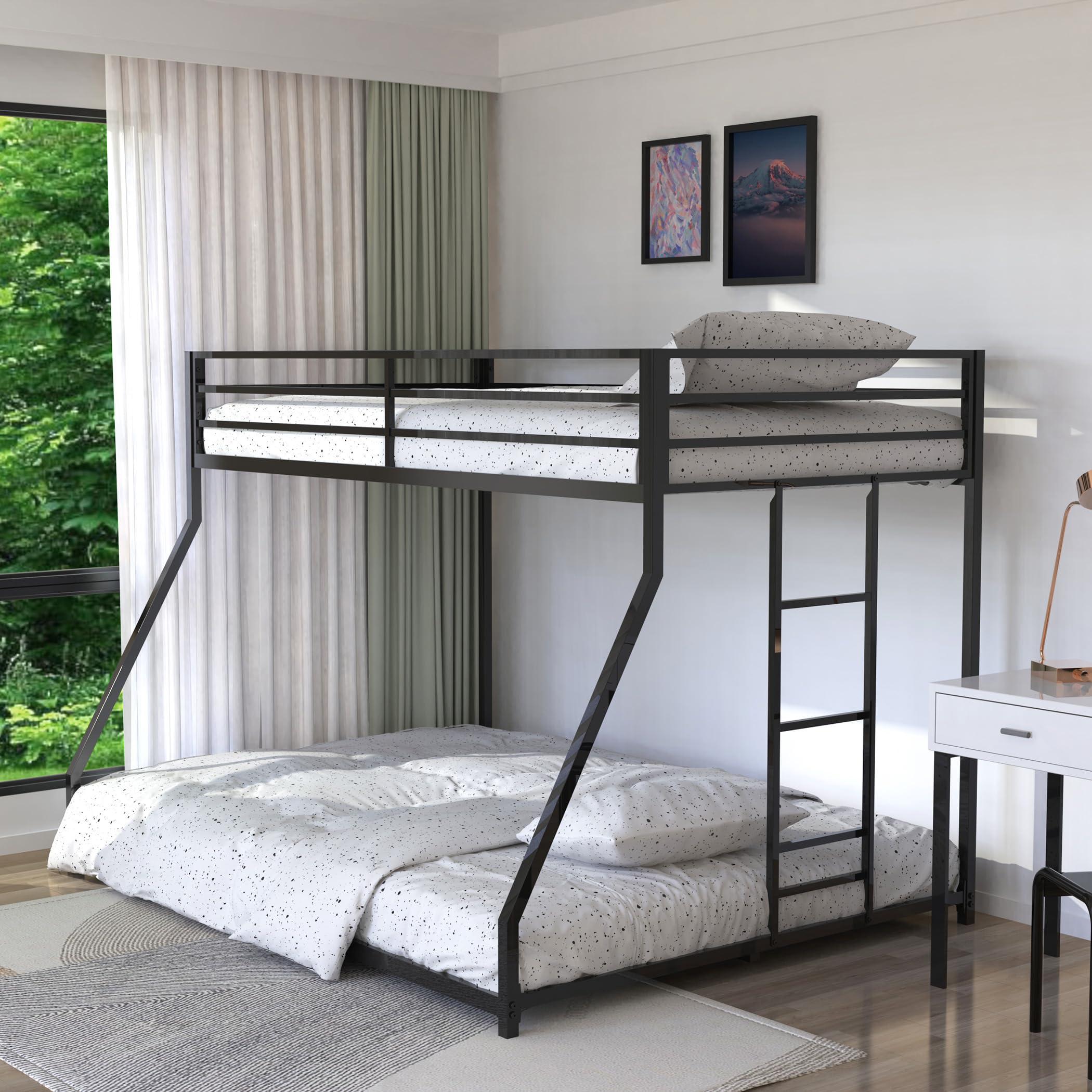Dolonm Metal Bunk Bed Twin Over Full with Ladder, Heavy Duty Sturdy Frame with Full-Length Guardrail, No Box Spring Needed, Easy to Assemble, Black