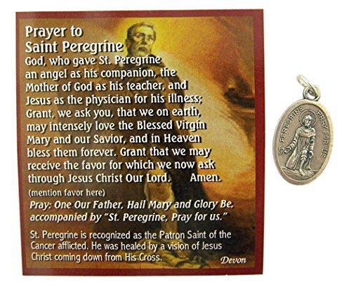 DTC Silver Tone Saint Peregrine Medal Pendant with Holy Prayer Card, 1 Inch
