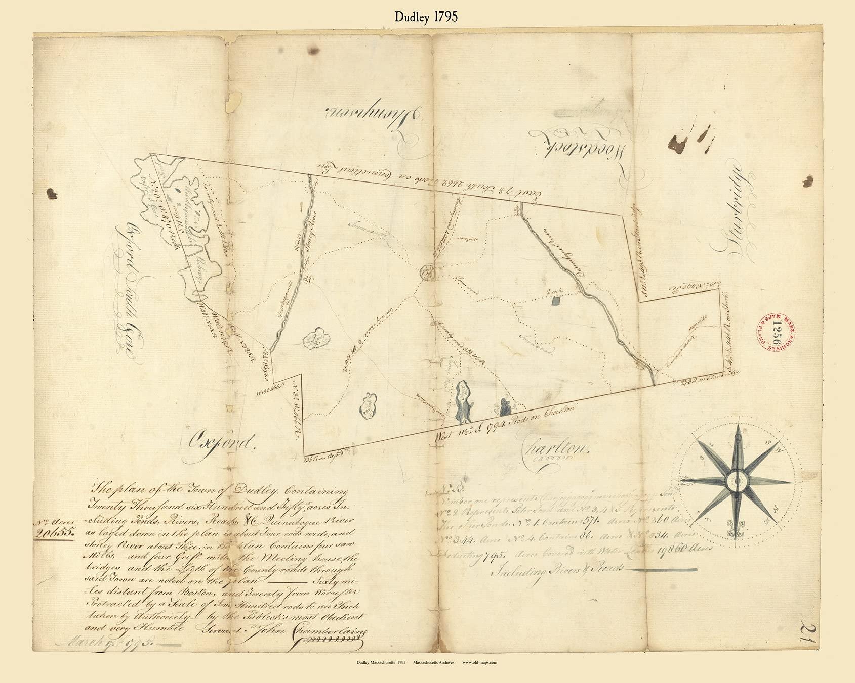 Dudley 1795 Town Plan - Old Map Reprint Massachusetts Archives - MA 18x24