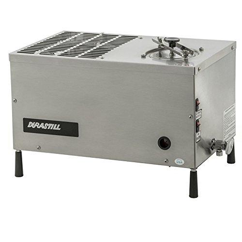 Durastill 12 Gallons per Day, Manual Water Distiller. Good for second homes, cabins, apartments or rental home situations where connection to a water line is not possible or desirable. Shuts off automatically as the boiler nears empty. Produces approx. 1.5 gallons per cycle. Does not include a reserve tank. Distilled water can be collected in a container of your choice, or a reserve tank can be added to the unit at a later time. Made in USA.