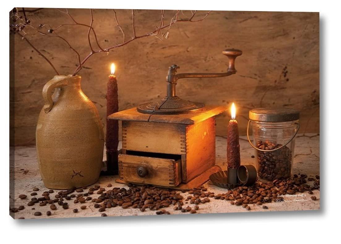 This 20" x 30" Gallery Wrapped Canvas Wall Art Print of Early Morning Coffee by Irvin Hoover is created on the finest quality artist-grade canvas, utilizing premier fade-resistant archival inks that ensure vibrant lasting colors for years to come. Every detail of the artwork is reproduced to museum quality specifications by our talented graphic artists. This magnificent canvas print is gallery wrapped by one of our professional framers on 1.5 inch deep wooden stretcher bars. The gallery wrap process allows you to hang the artwork on your wall frameless, since the printed border is wrapped around all four edges. Your gallery wrapped canvas print will arrive to your door ready to hang with all necessary hanging hardware. Canvas Art USA brings your walls to life with our meticulous attention to detail, all backed by the best customer service in the biz.