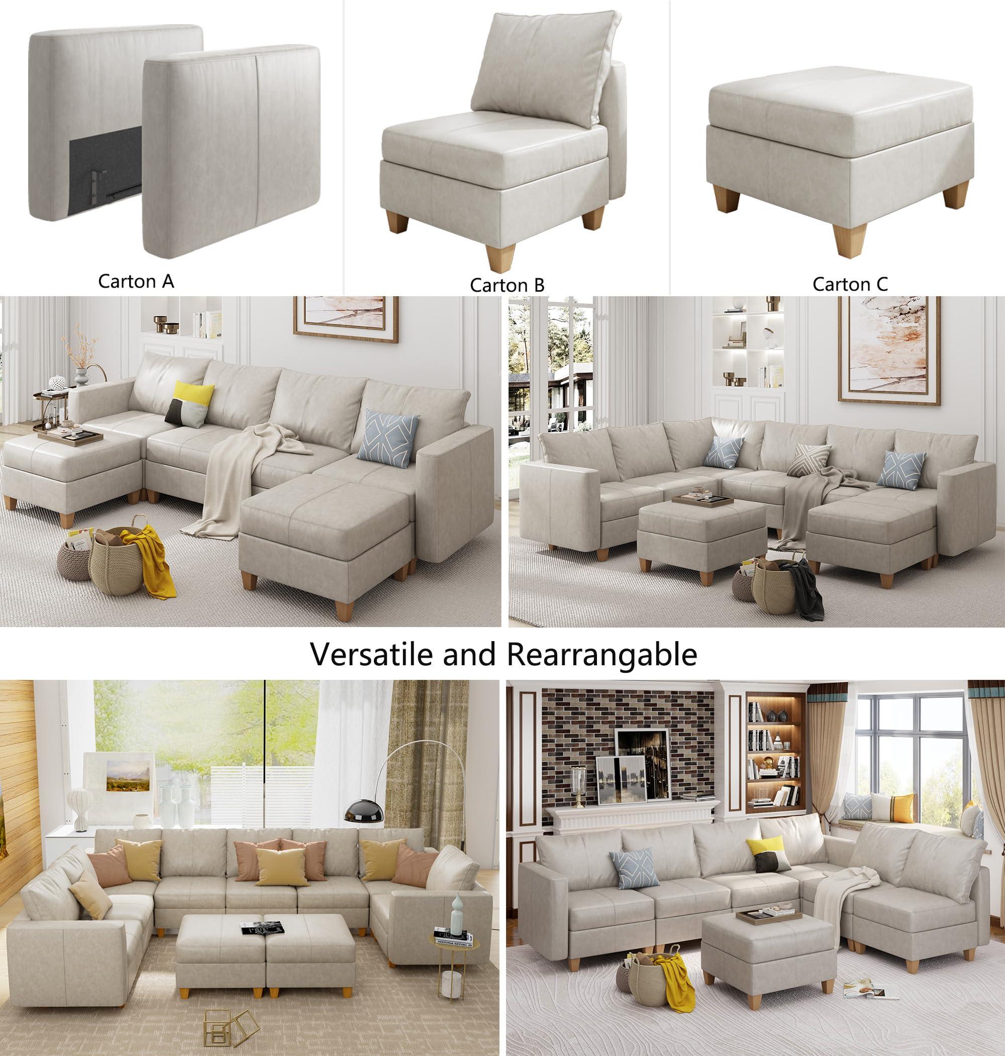 • Replaceable Seat Cushions to Save More Money:Our modular sleeper sofa is easy to assemble and it's convenient for you to rotate the pieces regularly to prevent uneven wear.After years you could just buy seat cushions only not just the whole modular sofa set.Really good value for money.Every seat has great hidden storage space(22.83"(L)*22.83(W)"*7.48"(H)approx).
