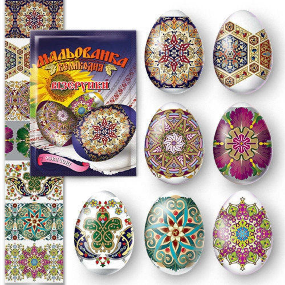 - Shrinkable (thermo) labels for decorating eggs for Easter - 7 pieces. Very beautiful and exciting detailed Ukranian and Russian ornament patterns.