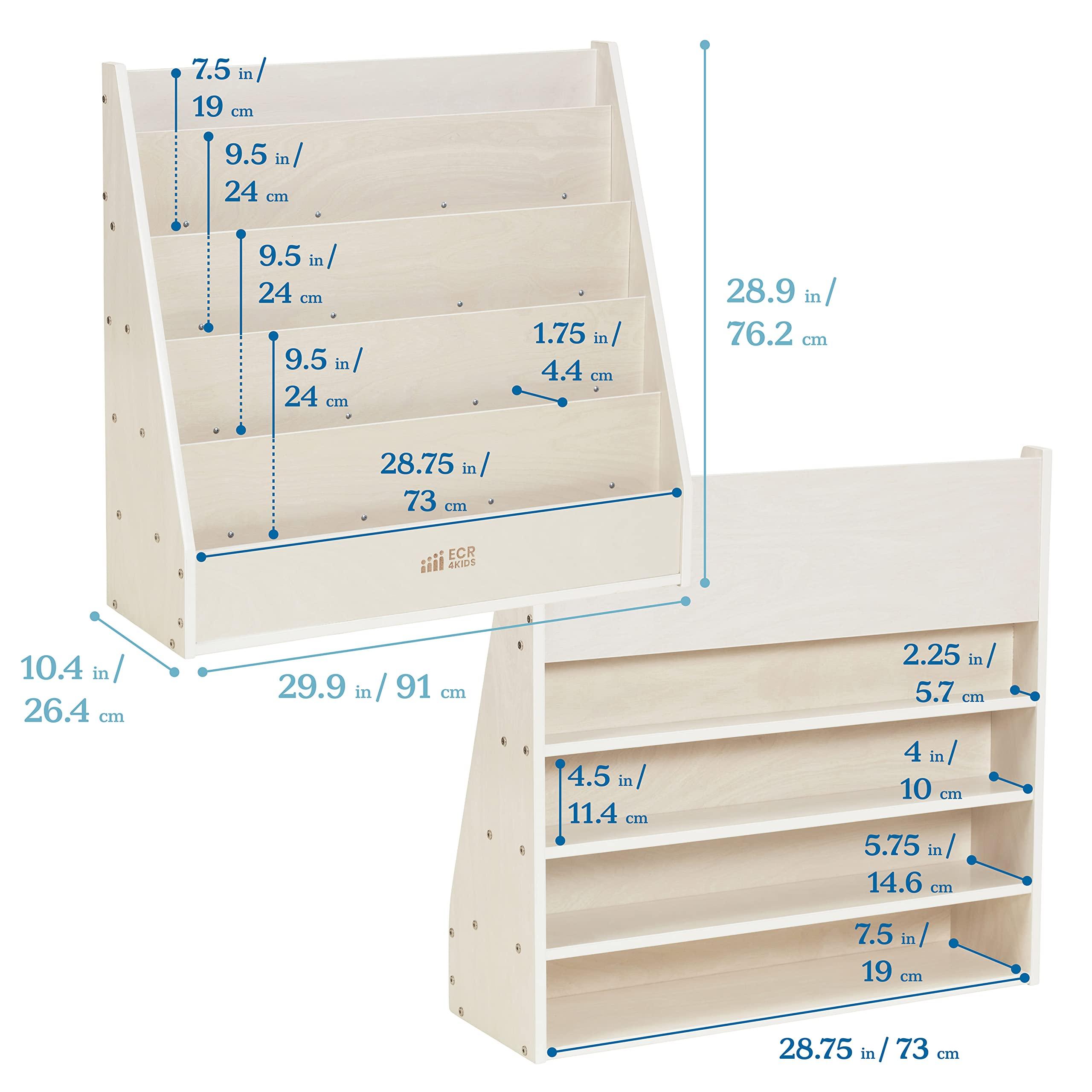 - Early Reading: The forward-facing bookcase is just the right size to let children see the cover of each book, prompting them to pick up a story and read; shelves on the back provide additional storage