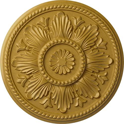 Our ceiling medallion collections are modeled after original historical patterns and designs. Our artisans then hand carve an original piece. Being hand carved each piece is richly detailed with deep relief, sharp lines, and a truly unique touch. That master piece is then used to create a mould master. Once the mould master is created we use our high density Urethane foam to form each medallion. The finished look is a beautifully detailed, light weight, solid construction, focal piece. The resemblance to original plaster medallions is achieved only by using our high density Urethane and not vacuum formed, "plastic" type medallions. - medallions can be cut using standard woodworking tools to add a hole for electrical or a ceiling Fan canopy. - medallions are light weight for easy installation. - they are fully primed and ready for your paint. If you have any questions feel free to ask. These are in stock and available for immediate shipment.