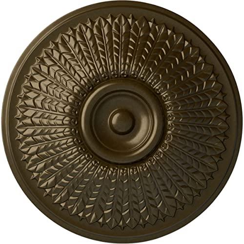 Our ceiling medallion collections are modeled after original historical patterns and designs. Our artisans then hand carve an original piece. Being hand carved each piece is richly detailed with deep relief, sharp lines, and a truly unique touch. That master piece is then used to create a mold master. Once the mold master is created we use our high density urethane foam to form each medallion. The finished look is a beautifully detailed, light weight, solid construction, focal piece. The resemblance to original plaster medallions is achieved only by using our high density urethane and not vacuum formed, "plastic" type medallions. Medallions can be cut using standard woodworking tools to add a hole for electrical or a ceiling fan canopy. Medallions are light weight for easy installation. They are fully primed and ready for your paint. If you have any questions feel free to ask. These are in stock and available for immediate shipment.