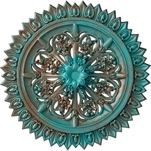 Our ceiling medallion collections are modeled after original historical patterns and designs. Our artisans then hand carve an original piece. Being hand carved each piece is richly detailed with deep relief, sharp lines, and a truly unique touch. That master piece is then used to create a mold master. Once the mold master is created we use our high density urethane foam to form each medallion. The finished look is a beautifully detailed, light weight, solid construction, focal piece. The resemblance to original plaster medallions is achieved only by using our high density urethane and not vacuum formed, "plastic" type medallions. Medallions can be cut using standard woodworking tools to add a hole for electrical or a ceiling fan canopy. Medallions are light weight for easy installation. They are fully primed and ready for your paint. If you have any questions feel free to ask. These are in stock and available for immediate shipment.