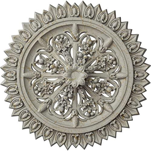 Our ceiling medallion collections are modeled after original historical patterns and designs. Our artisans then hand carve an original piece. Being hand carved each piece is richly detailed with deep relief, sharp lines, and a truly unique touch. That master piece is then used to create a mold master. Once the mold master is created we use our high density urethane foam to form each medallion. The finished look is a beautifully detailed, light weight, solid construction, focal piece. The resemblance to original plaster medallions is achieved only by using our high density urethane and not vacuum formed, "plastic" type medallions. Medallions can be cut using standard woodworking tools to add a hole for electrical or a ceiling fan canopy. Medallions are light weight for easy installation. They are fully primed and ready for your paint. If you have any questions feel free to ask. These are in stock and available for immediate shipment.