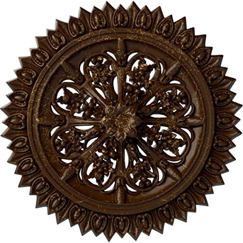 Ekena Millwork CM24LARBC Lariah Ceiling Medallion, 24 3/4\"OD 1 3/8\"ID x 3 1/4\"P, Hand-Painted Root Beer Crackle