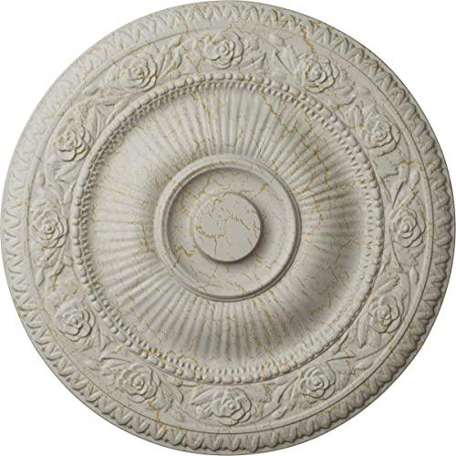 Our ceiling medallion collections are modeled after original historical patterns and designs. Our artisans then hand carve an original piece. Being hand carved each piece is richly detailed with deep relief, sharp lines, and a truly unique touch. That master piece is then used to create a mold master. Once the mold master is created we use our high density urethane foam to form each medallion. The finished look is a beautifully detailed, light weight, solid construction, focal piece. The resemblance to original plaster medallions is achieved only by using our high density urethane and not vacuum formed, "plastic" type medallions. Medallions can be cut using standard woodworking tools to add a hole for electrical or a ceiling fan canopy. Medallions are light weight for easy installation. They are fully primed and ready for your paint. If you have any questions feel free to ask. These are in stock and available for immediate shipment.