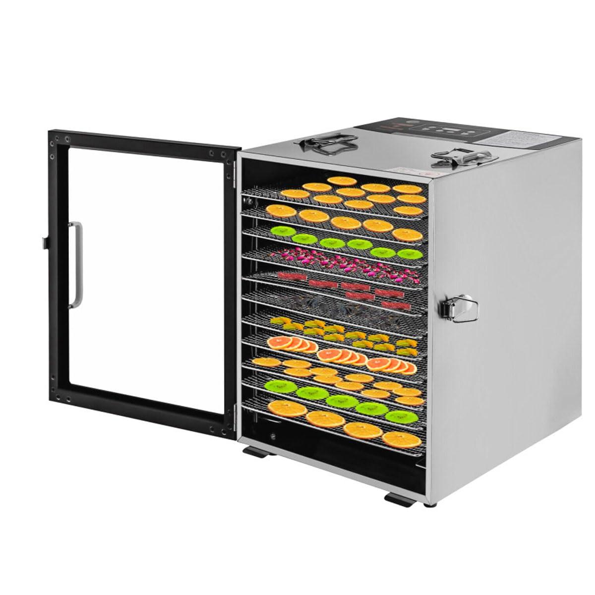 - Capacity: Extra large capacity, 12 BPA-free stackable trays and adjustable height, the trays are made of food-grade 304 stainless steel, making your family healthier. You can adjust the height of the tray according to the food you want to dry. Therefore, you can dehydrate different fruits, vegetables and meats at once to increase dehydration efficiency