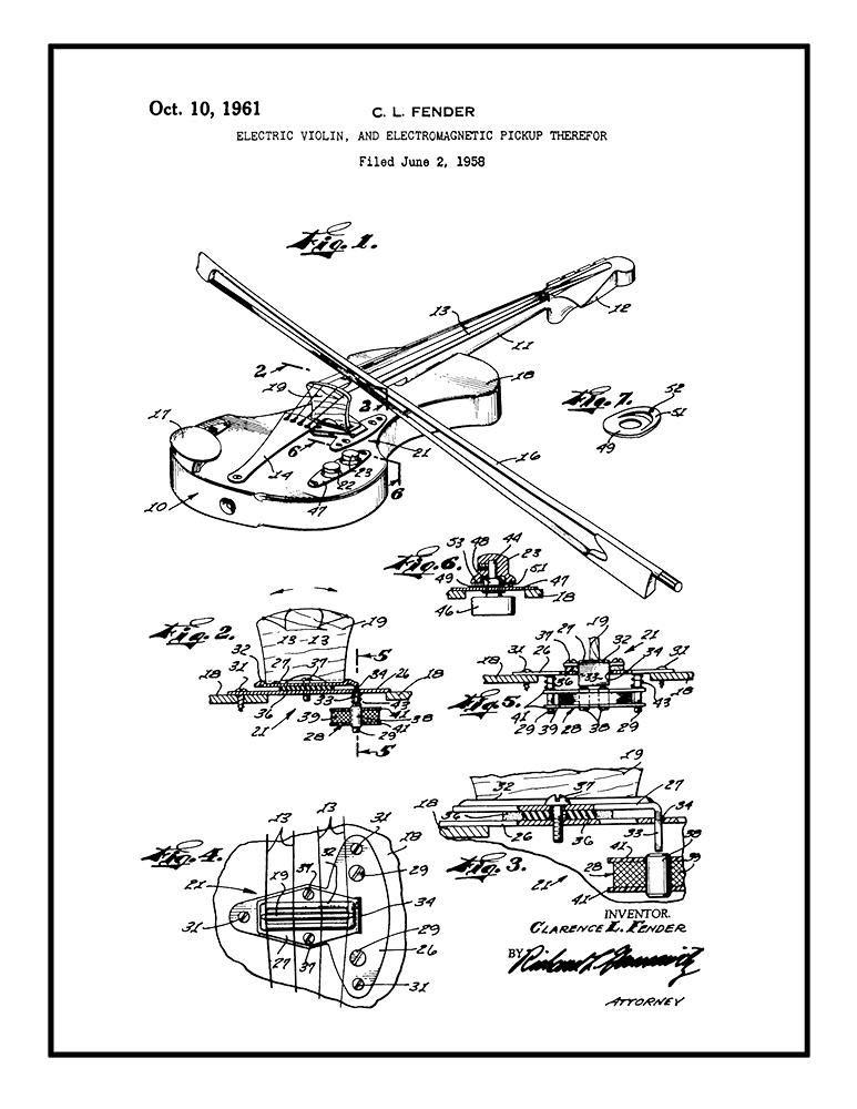 This is a reproduction of the original Patent for a Electric Violin, And Electromagnetic Pickup Therefor.