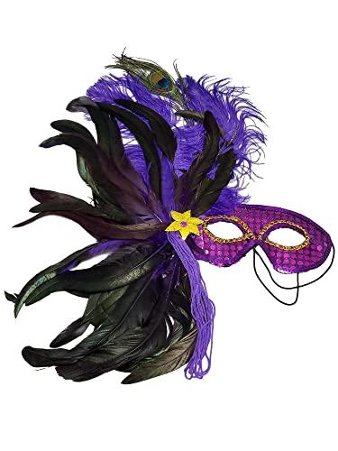 Elegant Purple Feather Mask Masquerade Mardi Gras New