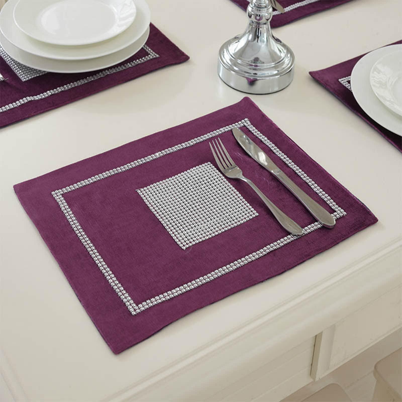 - This sparkly rhinestone placemats features comfortable fabrics and a variety of fresh colors. It would perfectly decorate your table.