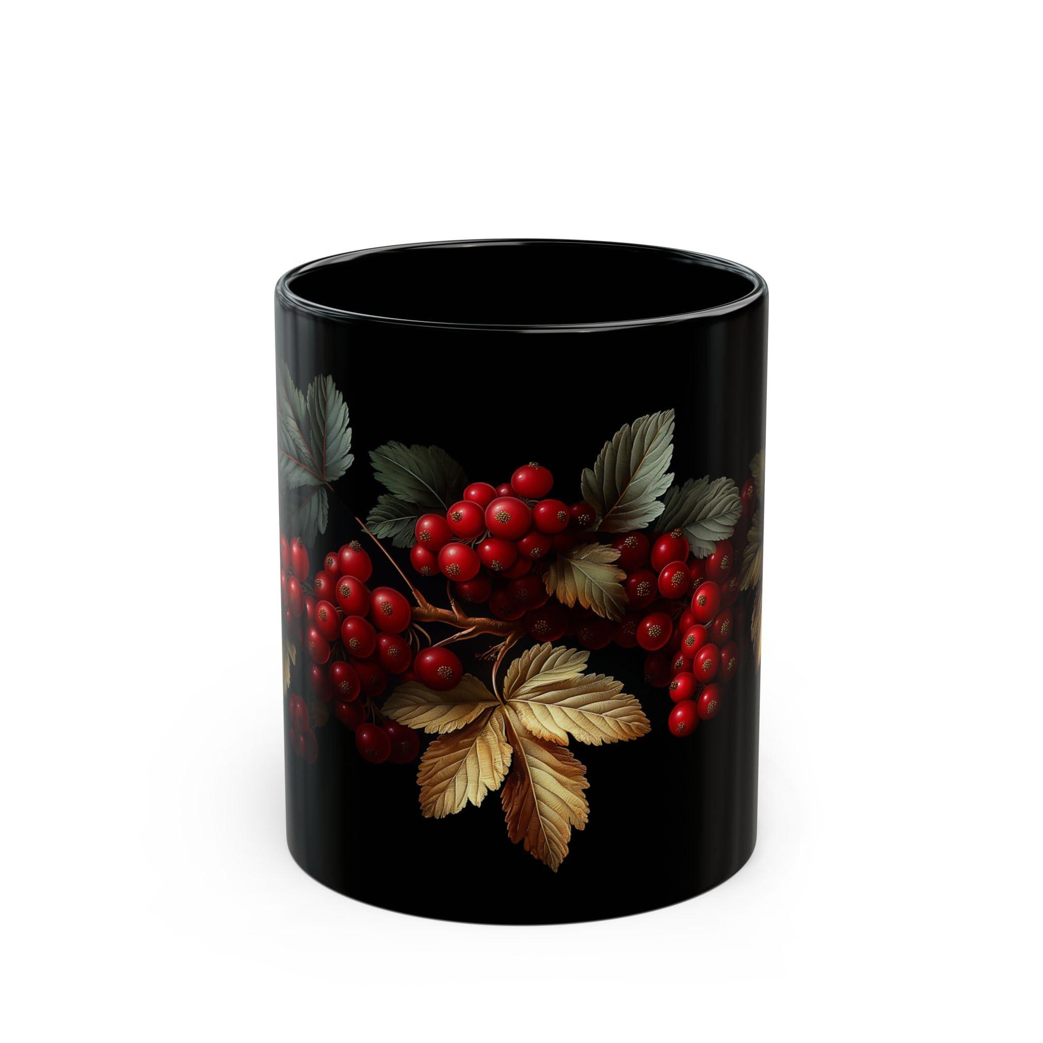 ElegantlySimple Red Cranberry Coffee Mug, Thanksgiving Golden Leaves Fall Foliage Black Tea Cup, Autumn Berries