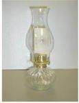 Brass burner, hobnail glass bowl, cotton wick and flare top chimney in wrap carton.