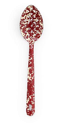 Enamelware Slotted Spoon, 12 inch, Burgundy/Cream Splatter (Single)