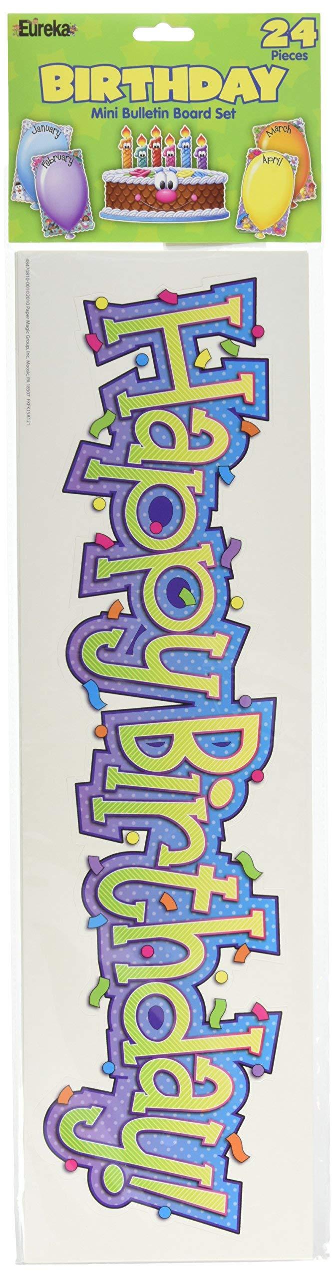 - Eureka's Happy Birthday set is a bright and colorful way to get your students excited for their birthdays. Every teacher needs to add this to their teacher supply list for the perfect birthday bulletin board in their classroom.