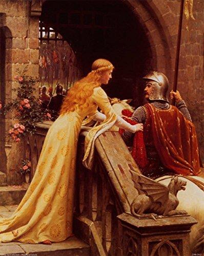 Edmund Blair Leighton (September 21, 1852 September 1, 1922) was an English painter of historical genre scenes, specializing in Regency and medieval subjects. Leighton was a fastidious craftsman, producing highly finished, decorative pictures, displaying romanticized scenes with a popular appeal. God Speed is a painting by British artist Edmund Leighton, depicting an armored knight departing to war and leaving his beloved. The woman ties a red sash around the knight's arm, in hope he returns, a medieval custom which assured both parties they would be reunited, alive and well.