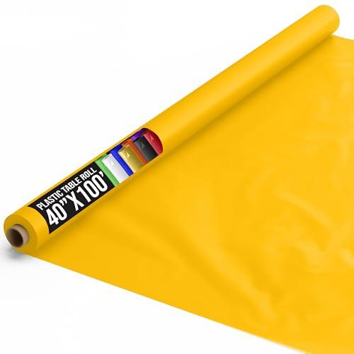 - PREMIUM QUALITY - Yellow plastic tablecloth roll Is your go to disposable table cover to keep your table nice and clean - our thick heavy duty plastic banquet table roll is the perfect way to protect you table from any dirt or spills