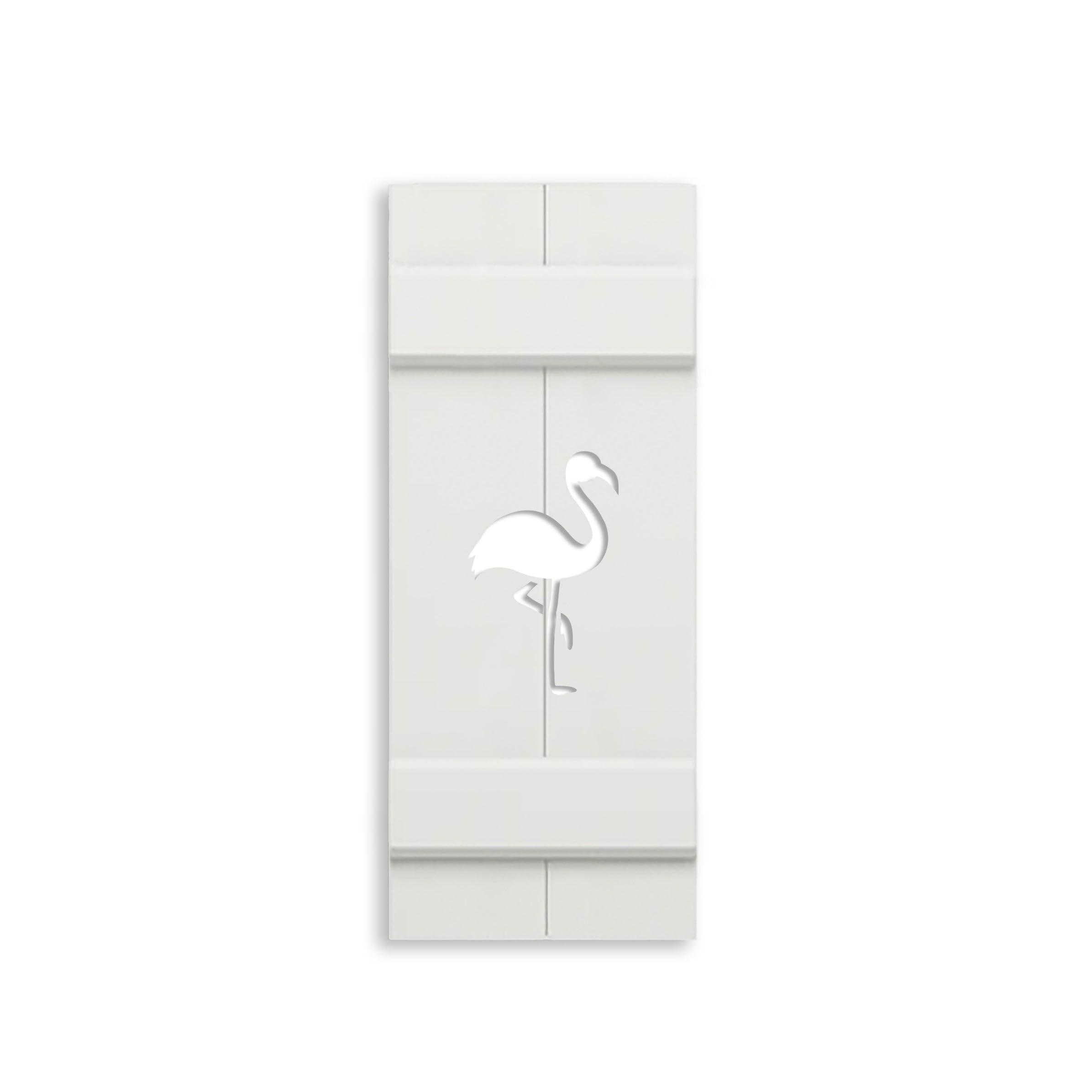 ******The Listing is for ONE shutter******CNC made for the perfect fit every time! We have several designs but can do custom if you have an idea. Shutters are custom made to order from 1/2" PVC sheets. Perfect for your beach house or adding a custom touch to any home. Paint with latex Exterior paints. These shutters come unpainted white. No hardware included. Please contact with any questions. Since these shutters are custom made to order please allow 5-10 business days for order. All orders . Freeping is for lower 48 US states only. We are proud to present our PVC shutters. PVC Benefits:Completely WaterproofDoes NOT rotDoes NOT crackDoes NOT SplitPaints Just Like woodPaint last 3 to 5 times a longer than it does on woodCan directly contact Masonry Can directly contact MoistureThese flamingo shutters are the perfect addition to your Florida home.Painting Instructions-Avoid painting in direct sunlight or on hot surfaces-Use 100% acrylic exterior latex paintPAINTING1. Clean surface with denatured alcohol prior to painting. The surface must be clean, dry, and void of any foreign article and material such as dirt, oil, grease or other contaminates.2. Avoid painting dark colors in area of direct sunlight.General brands such as Sherwin Williams, Behr, Glide, etc. are all suitable.3. Always use paint with Light Reflective Value (LRV) of 55 orhigher.4. If paint darker color (LRV of 54 or lower), Vinyl safe paintor paints specifically designed for such application mustbe used.4. Latex can take 2-4 days to dry so avoid exposing to dew, high humidity, moisture, or rain shortly after you have painted the shutters. Paint must be completely dry before installation.5.A sprayer will have best finish results. If you do not have access, or cannot hire someone to spray, the shutters can be brushed or rolled directly