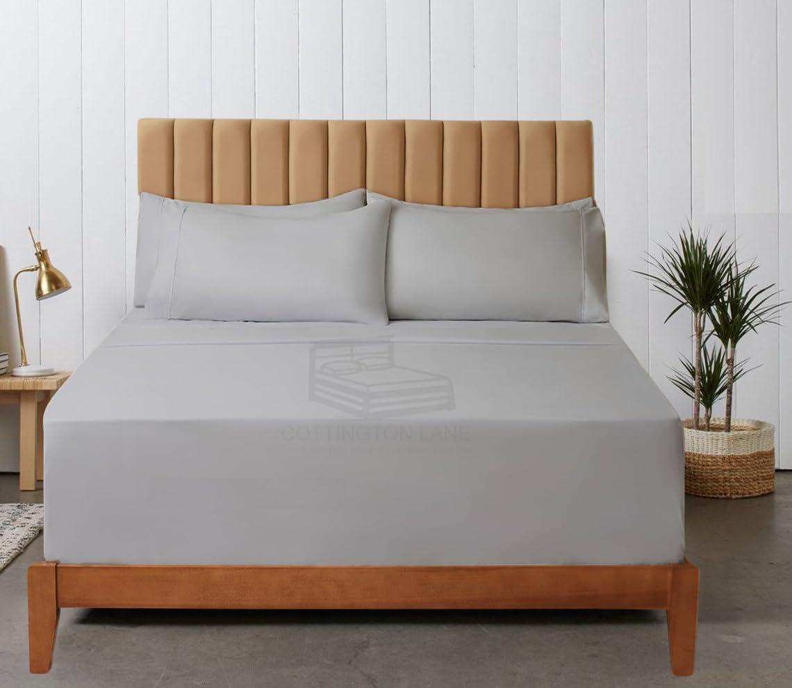 - PREMIUM EGYPTIAN COTTON SHEET & PILLOWCASES SETS: Cottington Lane extra deep pocket California King bed sheets are crafted from cotton yarns - sateen weave, offering a full silky feel that is breathable at the same time. You can have California King hotel collection extra deep sheets that make your bedroom look cozy. California King extra deep best quality Silver Grey Solid bedding sheets & pillowcases have a classic design.