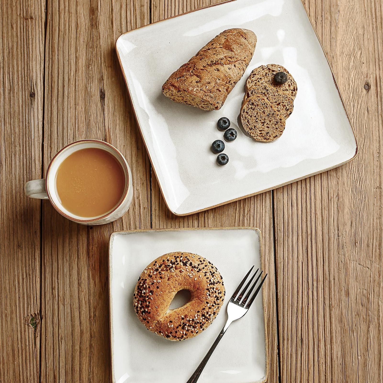 - 18-Piece Dinnerware SetThis dish sets service for 6 that includes six large square 9.75 inch dinner plates, six 7.25 inch salad plates and six 6 inch cereal bowls. This kitchen plates and bowls set meet the need of your family well.