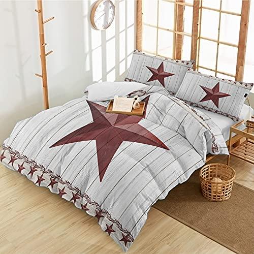 Queener Home Farmhouse California King Duvet Cover Set Rustic Country Star Wheat Ears, 3 Piece Bedding Set Microfiber Quilt Cover with Pillow Shams for Kids/Teens/Men/Women Western Farm Barn Door Plank