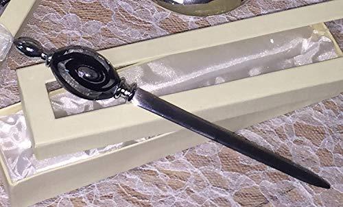 - Stunning handmade murano design chrome plated letter opener with swirled silver and black glass handle
