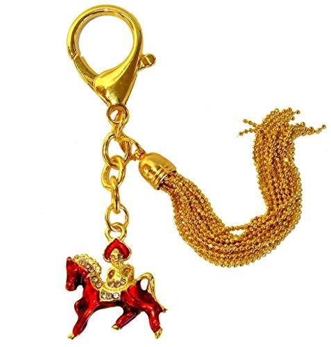 - This lovely red bejeweled red horse keychaincarrying flaming jewel of victorysparkles with vibrant color, brilliant jewels, and excellent craftsmanship.