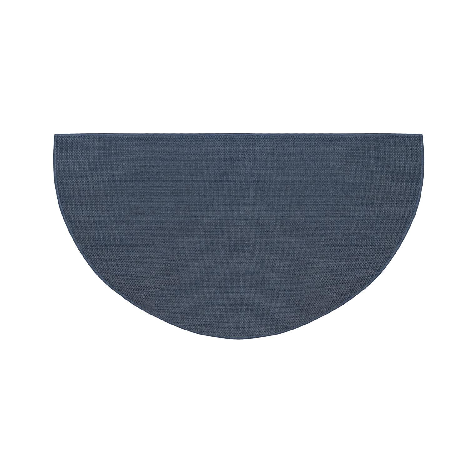 Fire Retardant Fiberglass Half Round Hearth Fireplace Area Rug Polyester Trim Non Slip Mat Low Profile Protects Floors from Sparks Embers Logs 27 W x 48 L Blue