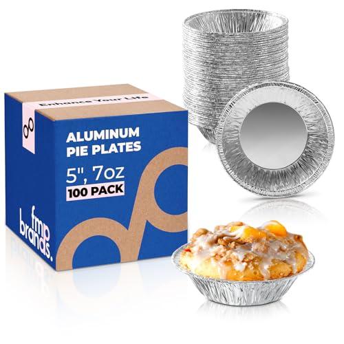 - PREMIUM QUALITY PIE TINS DISPOSABLE 5INCH:100 pack mini pie pans that are made of durable, thick 45 gauge break resistant aluminum foil. These disposable baking tins bulk are the perfect size to make pies, tarts, quiches, mini cheesecake and apple crisps. Top diameter: 4.8" , Bottom diameter: 3 , Depth: 1.25.
