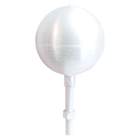 White 5 inch diameter aluminum ball top ornament for ground set flagpoles. This ball top has a 1/2" - 13NC spindle threading to fit into the top of any truck assembly with a 1/2" inch thread pattern.(Imported)