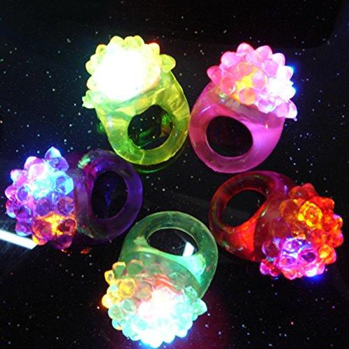 Jelly rings are super cool! They are soft and stretchable and lots of fun. Squeeze to turn on and off. Jelly rings come assorted in color and feature multi-colored LED lights inside. Safe and water proof. Get these flashing LED jelly berry ring for your next party, club or rave! Batteries are not replaceable.