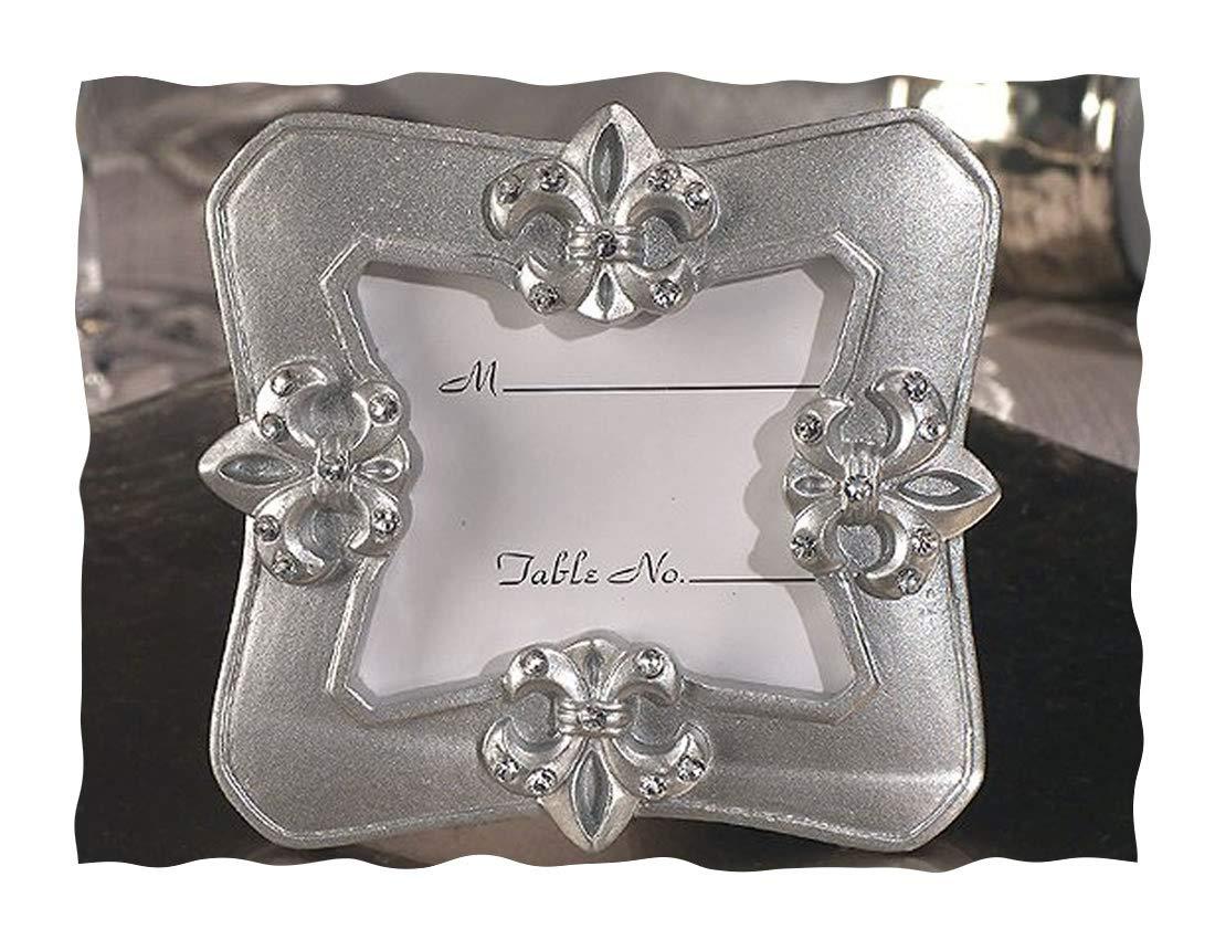Looking for a chic event favor? Then look no further, Fleur de lis themed event favors are among the hottest trends this year and Cassiani collection has exclusive designs that are perfect your next party. These silver resin photo / place card frame favors will add that special finishing touch to your eventful day, each frame has elegantly carved fleur de lis symbols accented with the perfectly placed crystals, they measure 3" x 3" and hold a 1 3/4" x 1 3/4" photo. Place card insert included and comes individually packaged in a white box.