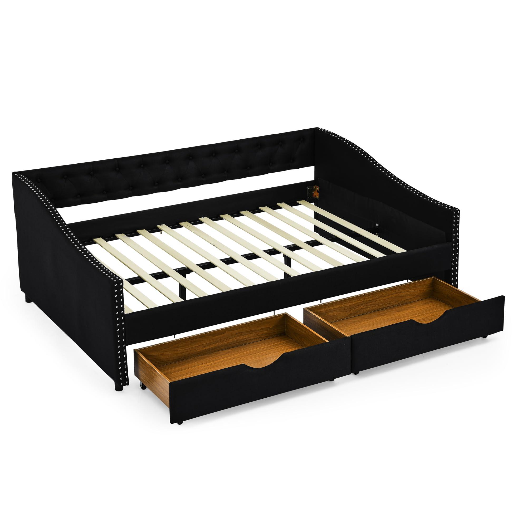 - Daybed with 2 Storage DrawersThe pull-out drawers can storage daily staff, this twin daybed comes with casters that lock in place so your visits don't slide away. Pull-out drawers provide more storage space for cloths, pillows, toys and so on.