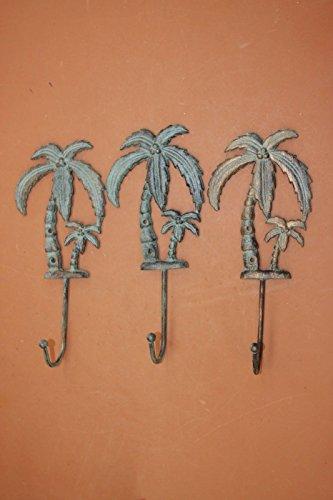 Floridian Bath Decor Tropical Palm Tree Bath Hook Cast Iron Bronze-Look, 9 1/2\", Set of 3