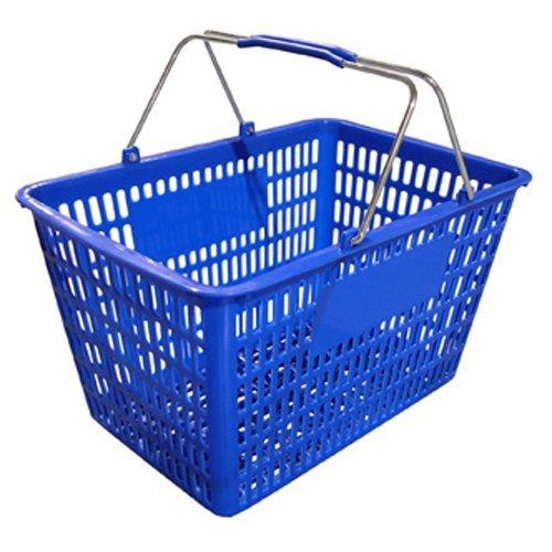 This durable plastic hand basket provides increased carrying capacity and is supported by two steel handles coated in plastic, offering strength, balance and comfort. Length 18.75 inches (469 mm), width 11.5 inches (288 mm), height 10.38 inches (259 mm). Capacity 50 lbs.