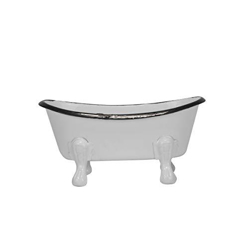 - Style: This enamel soap dish is inspired by a vintage claw-foot bathtub and features a distressed white enamel finish with a black rim. With it's rustic style, this soap dish will fit perfectly in any bathroom or kitchen countertop.