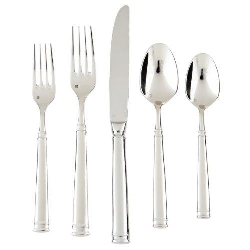 - 5 piece set includes: table fork, salad/dessert fork, table knife, dessert/soup spoon, coffee/ tea spoon; features heft, weight and balance in hand