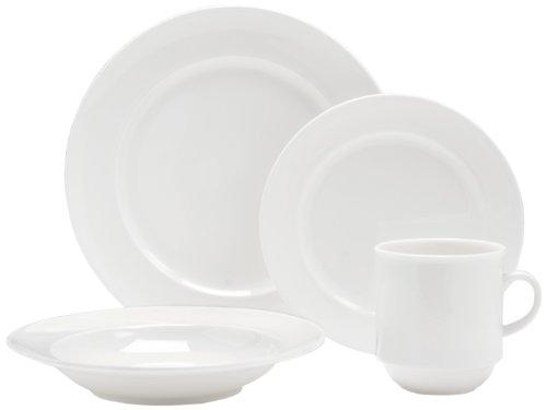 - Set includes: 4 each-10 5/8 -inch dinner plate, 8 -inch salad/dessert plate, 9 -inch rim bowl, 12 ounce stackable coffee mug in cassia collection