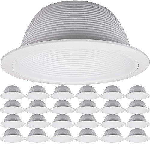 Four Bros SB30/WHT measures 6 inches in diameter and includes a white oversized ring. This stepped White baffle trim creates a smooth transition between the light and the ceiling. Use with LED or traditional bulbs. 7-1/4" Oversized ring with air tight seal insure no air is leaking.