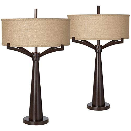 - Pre-Assembled ShadesAllegheny bronze finish lamps. Metal construction. Burlap fabric drum shades. 8-foot long brown cords. May ship in multiple boxes and arrive at separate times.