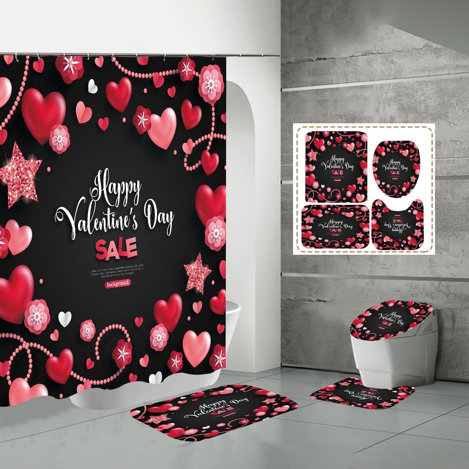 CREATIVE DESIGN: Adopt Valentine's Day elements, this waterproof shower curtain set adopt HD print and featuring vivid colors, crisp lines and delicate hemming, will bring you a different novelty and stylish experience.