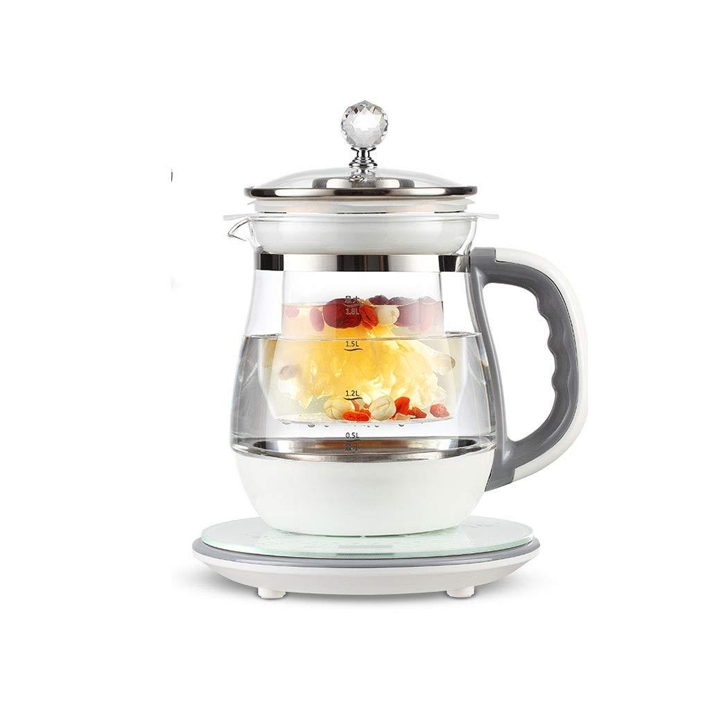 Heating method: chassis heating Body material: high borosilicate glass Additional features: automatic heat preservation, timed appointment Whether to bring a stew pot: Yes Whether with filter: Yes Working voltage: 110-240v Multi-function: boiling water|flower nectar| soup|bird's nest stew|yogurt|baby water|heat preservation|ganoderma lucidum/ginger soup. The glass stew cup does not taint the flavor, and better maintains the original flavor of the food,Food grade 304 stainless steel, portable filter, easy to change tea. 1.8L gold capacity,24-hour appointment. Anti-dry-burning protection, automatic identification of the temperature in the pot, dry-burning and power failure, to protect the safety of use. High borosilicate glass kettle body, it will not break in sudden cooling and heating, resistant to 200C temperature difference, easy to clean and no smell 60 seconds to lift the pot memory, the pot lift memory function when the pot body is moved away from the base, put it back within 60 seconds to continue the previous working procedure. Uses: make coffee, make milk powder, make tea, boil water. Enjoy your breakfast or tea time. The small size makes this kettle easy to take anywhere. can do other housework, relax, watch movies or play music without having to look at the kettle.