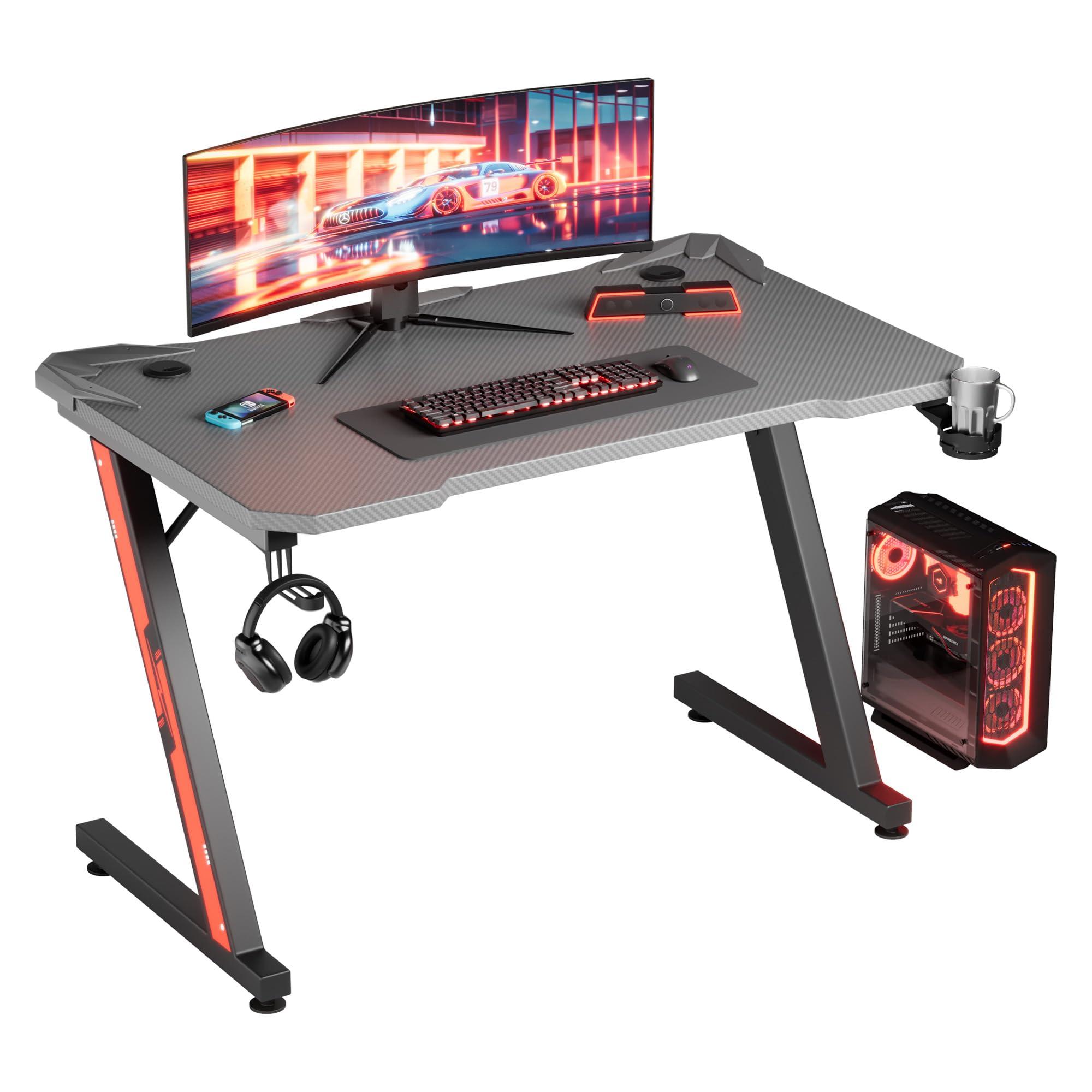 - Carbon Fiber Surface: This computer desk is created for gaming, carbon fiber surface gives this home office desk a better texture. Scratch and impact-resistant design supports this computer table to last longer. Water and sweat resistant provide you a more immersive gaming experience.