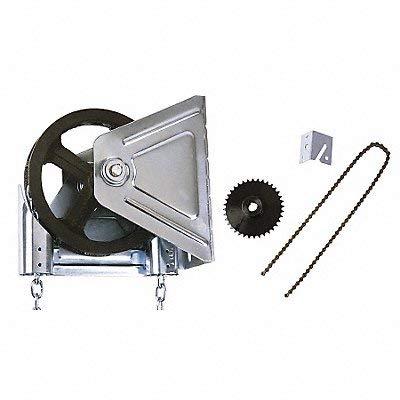 1PK Garage Door Opener Wall Mount Garage Door Opener Manual Chain Hoist Max. Door Height (Ft.) 18 Standards 1 in Bore Includes (1) Chain Keeper and 1/4 in Key 26 ft of Hand Chain 3 ft of #41 Roller Chain 4:1 Reduction Sprocket Wall Mounting NULL