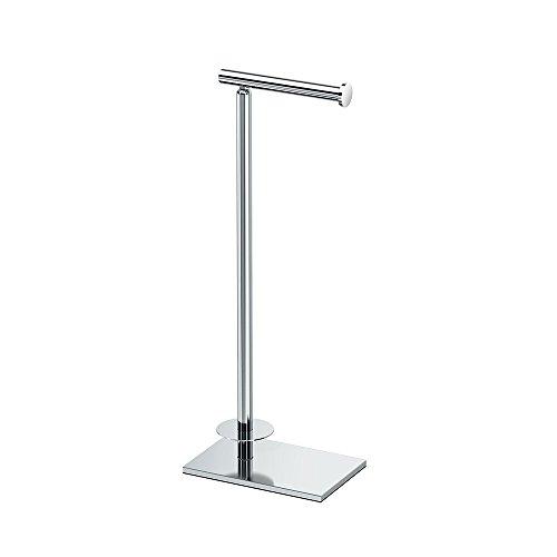Gatco introduces our stand-alone bath tissue holder with toilet paper storage. This sturdy slim floor standing design can be placed on any floor surface including tile, hardwood, and carpet. Perfect space-saving organizing alternative to a shelf, rack, or canister. Enjoy easy drill free installation, leaving your walls damage free. This dispenser allows the flexibility of placing toilet paper or hand towels anywhere most convenient and aesthetically fitting in your modern, industrial, or traditional bathroom. Features extra space for toilet paper roll storage. Stands 21.13 inches tall, big enough to fit a total of five toilet paper rolls. Our products are made of high-quality metal to insure decades of reliable use. Adorn your bathroom with four luxurious finish options- chrome, matte black, brushed brass, and satin nickel..
