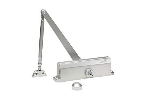 Global Door Controls Compact Commercial Door Closer in Aluminum with Adjustable Spring Tension and Backcheck - Size 5